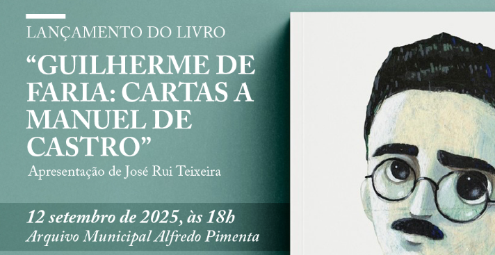 O Município de Guimarães, através do Arquivo Municipal Alfredo Pimenta, apresenta no dia 12 de setembro, às 18h00, o livro “Guilherme de Faria: Cartas a Manuel de Castro”, com apresentação de José Rui Teixeira. A iniciativa marca a aproximação do centenário da morte do poeta vimaranense (1907-1929), cuja obra deixou uma marca singular na literatura portuguesa.