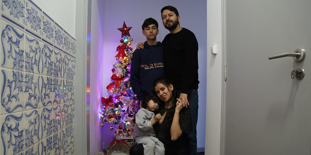 “É outra escala”, complementa Edwin. “As pessoas fazem a sua árvore de Natal, em casa, e colocam muitas luzes fora de casa. Claramente outro nível comparado com o que se faz aqui”, atesta. “Agora que estamos num local diferente, podemos ver que as iluminações das nossas ruas são realmente incríveis”, diz Lorena com um brilhozinho nos olhos enquanto segura o pequeno Emanuel Rojas Arias. Mais ao lado está Sebastian, o filho mais velho.